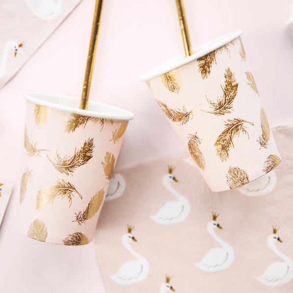 6-pakning med pappkrus med bladgull fra vårt søte tema «Nydelig svane».