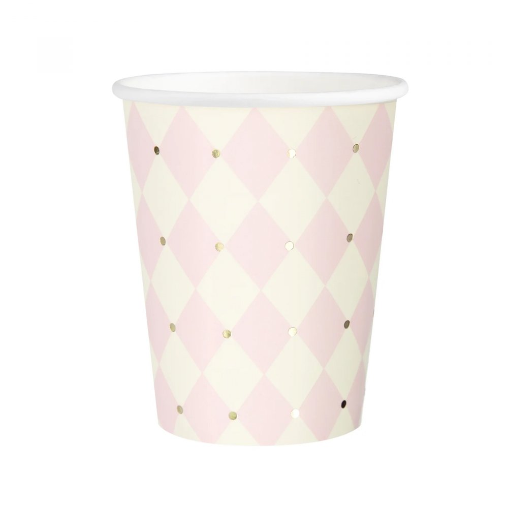 Papirkopper - Rutete - Rosa/Gull - 10-pakning