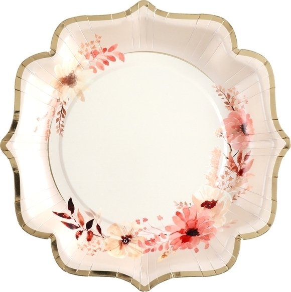 Papirtallerkener - Blomsterfarget elfenben - 10-pakning