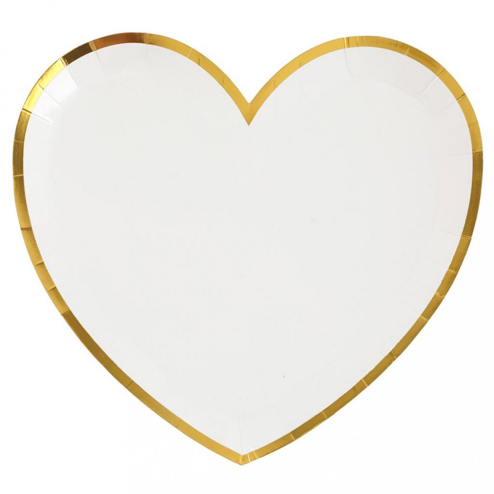 Papirtallerkener - Hjerte med gullkant - Hvit - 10-pakning