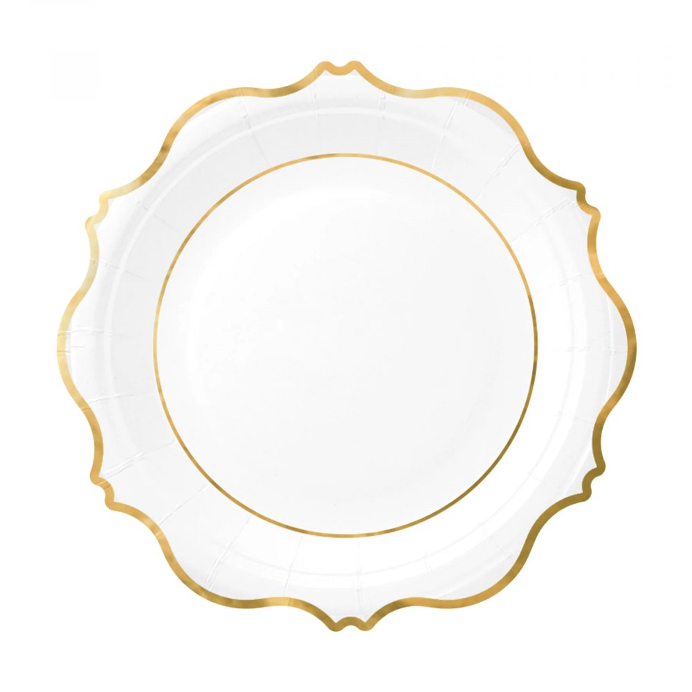 Papirtallerkener - Hvite med gullkant - 6-pakning