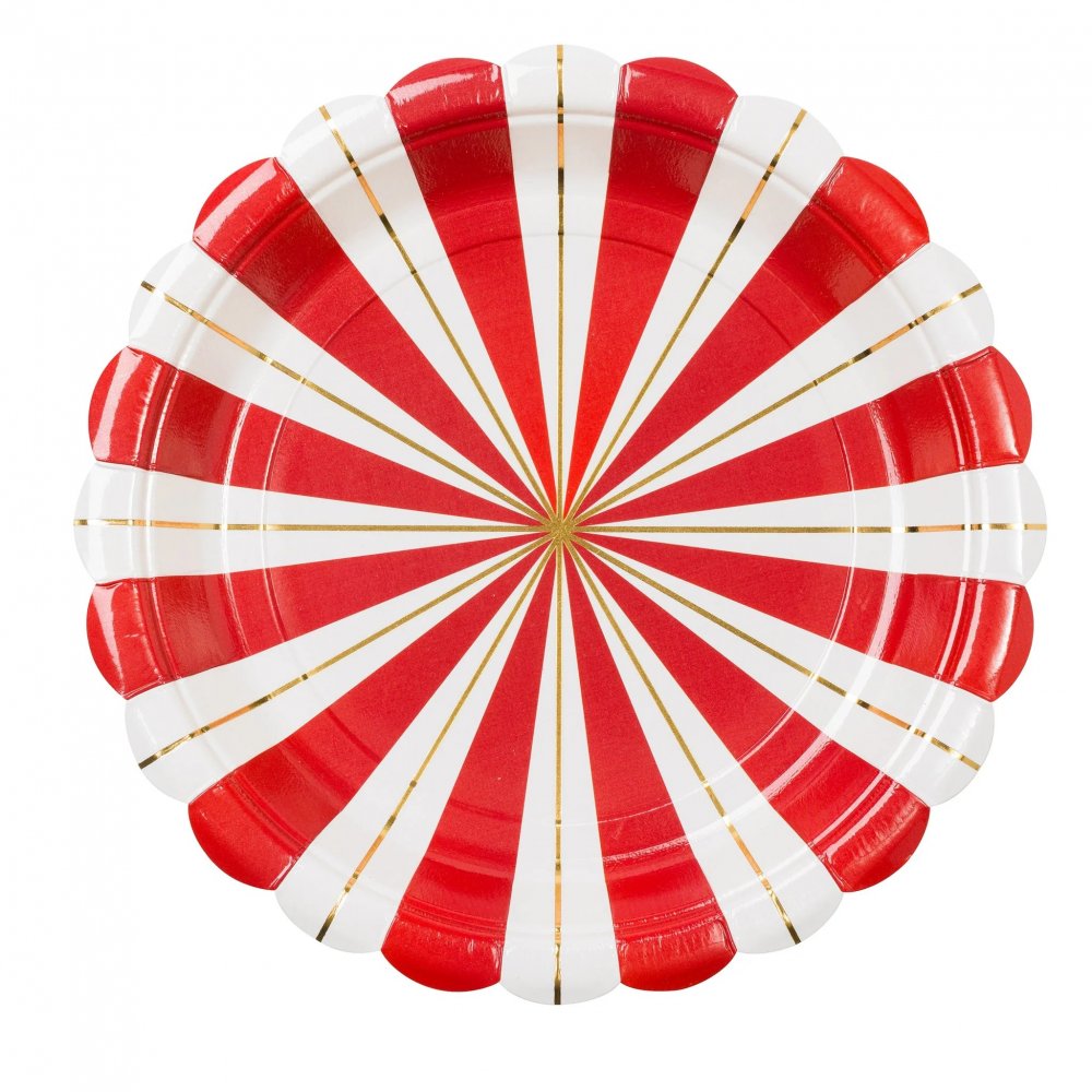Papirtallerkener - Rød, Gull, Hvit - 19,5 cm - 8-pakning
