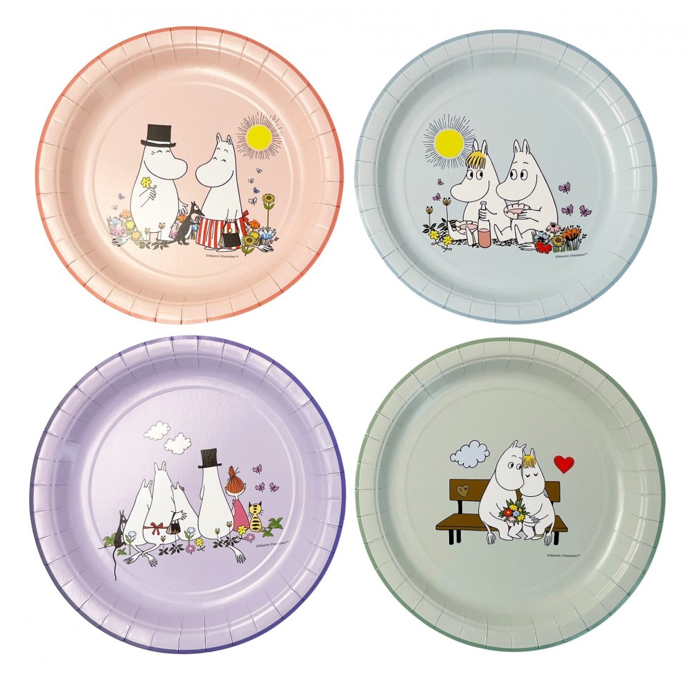 Runde papptallerkener med nydelige Mummi-motiver, perfekt for alle Mummi-elskere. Pakken inneholder 8 tallerkener med 4 forskjellige motiver, hver tallerken har en diameter på 23 cm. En flott detalj for å skape en festlig og fargerik atmosfære på festen eller arrangementet ditt.
