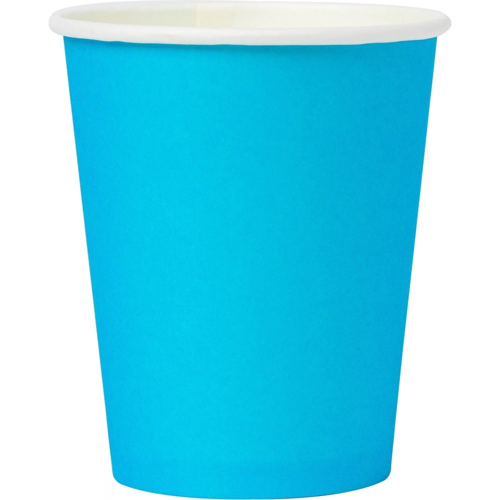 8-pakning med lyseblå pappkrus, rommer omtrent 250 ml.