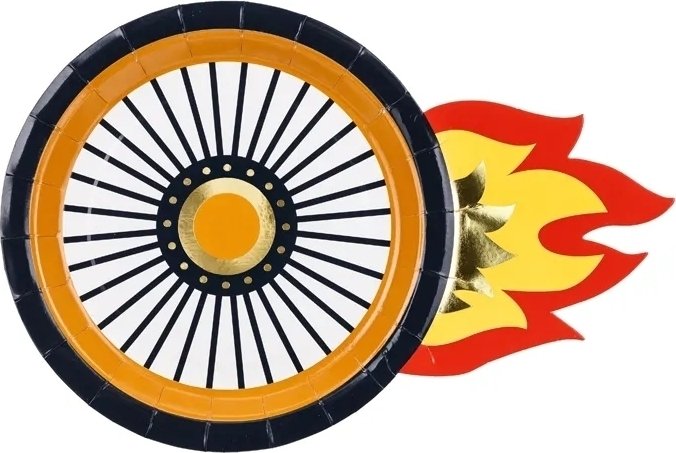 6-pakning med papptallerkener med racingtema. Tallerkenene er omtrent 26,5 x 18 cm.