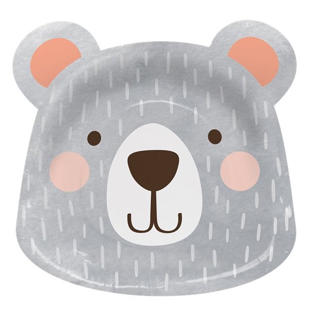 8-pakning med papptallerkener formet som en bjørn, så søte til festen!