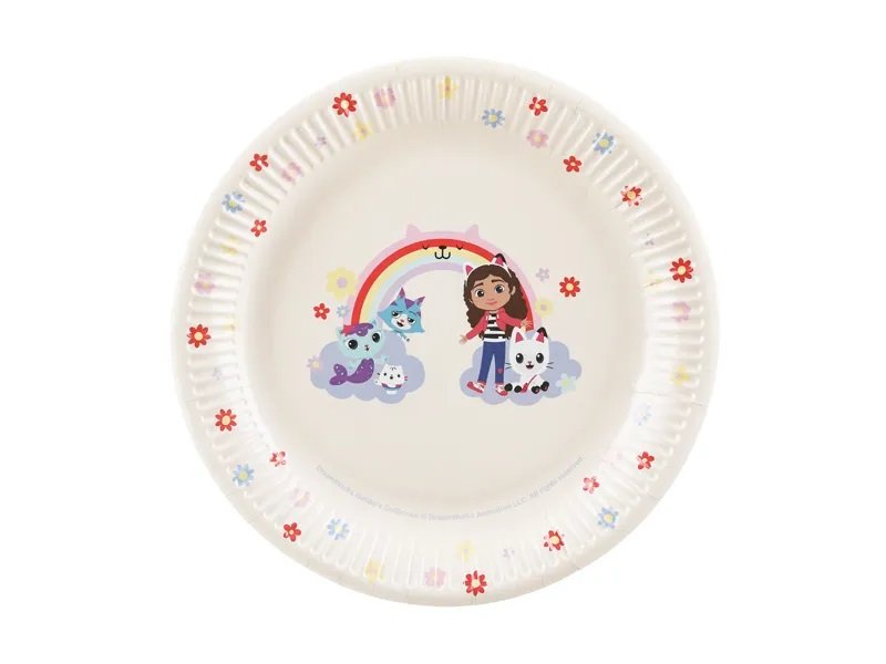 Papirtallerkener med motiver fra det populære Gabby's Dollhouse.