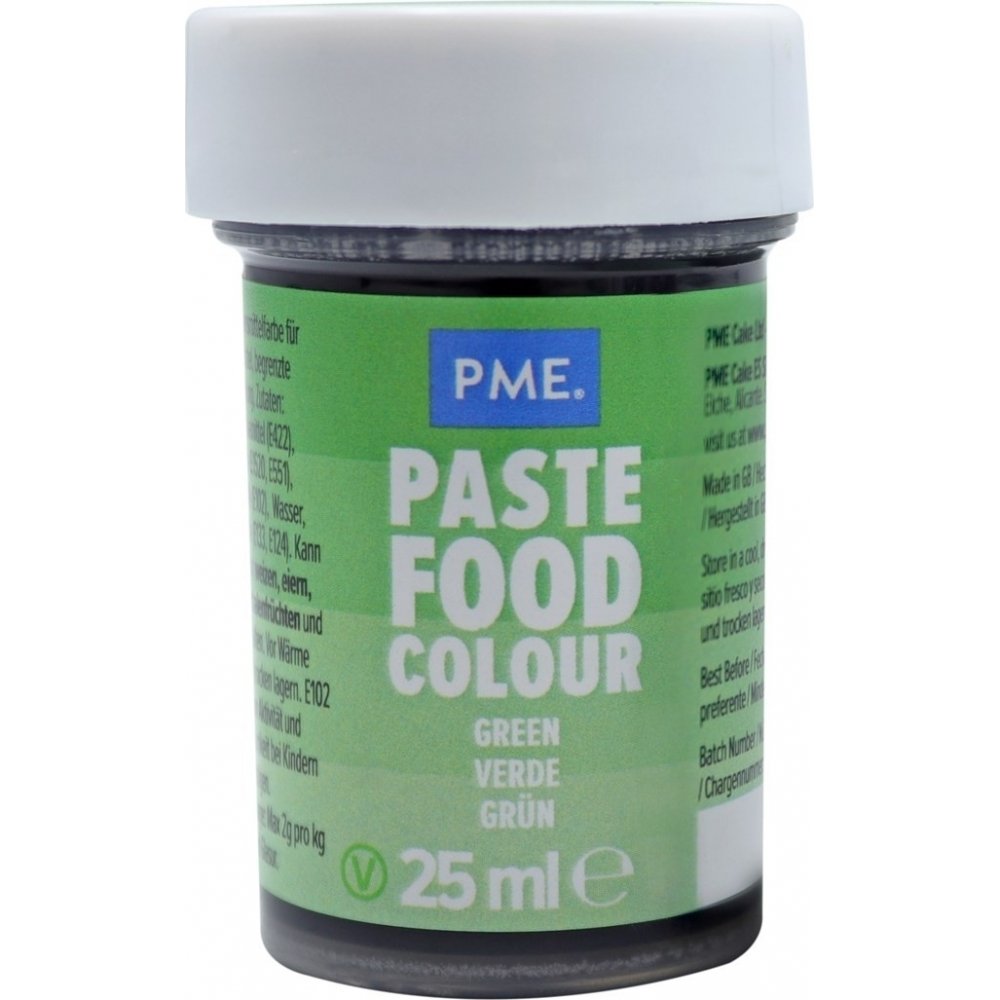 Ertegrønn pastafarge, perfekt til fargelegging eller forbedring av sukkerpasta, marsipan og glasur. Dypp en tannpirker eller lignende i malingen og påfør den deretter på det du vil fargelegge.