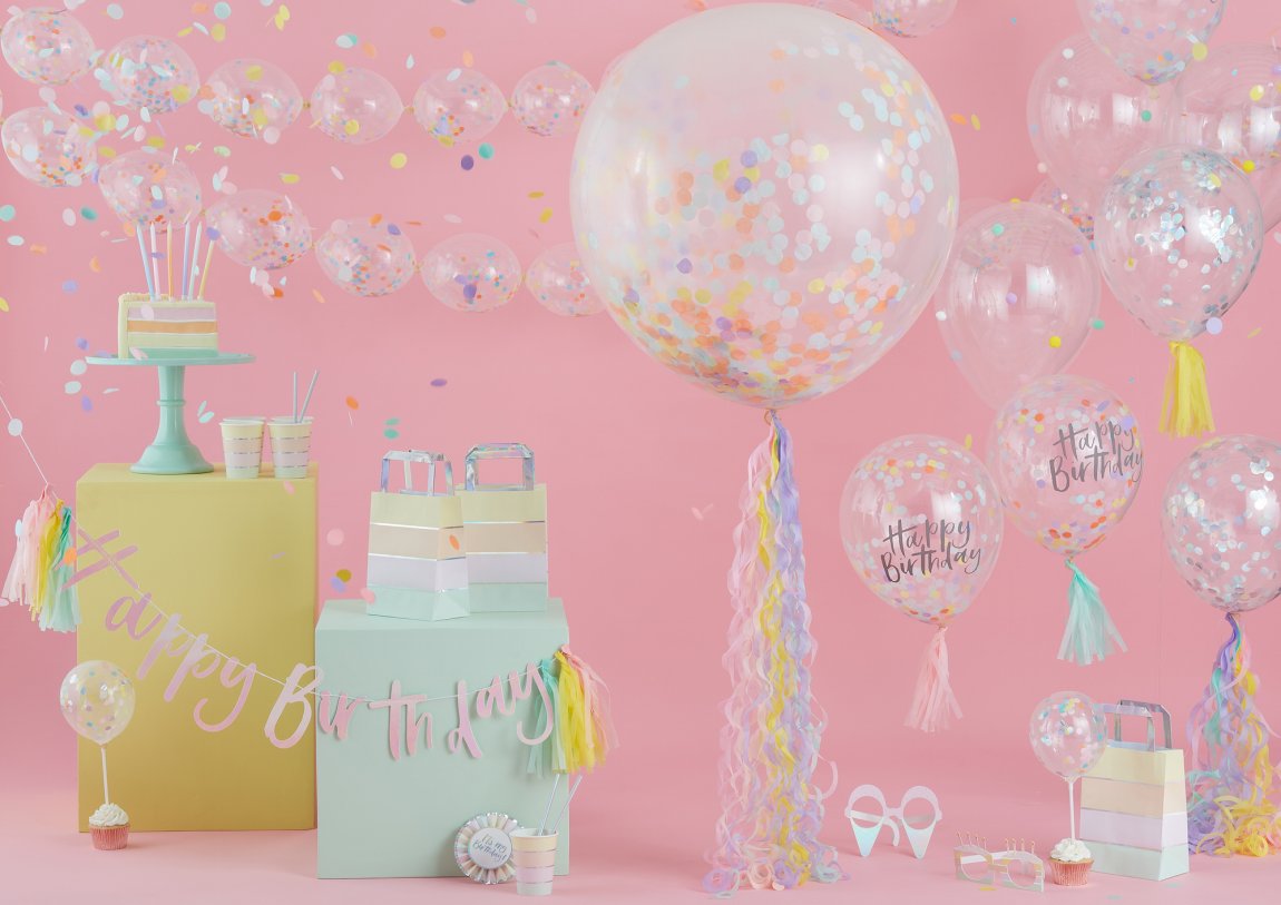 5-pakning med konfettiballonger fra vårt fine tema «Pastellfest».