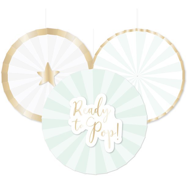 3-pakning med pin-hjul i hvitt, mint og gull - Perfekt til babyshoweren.