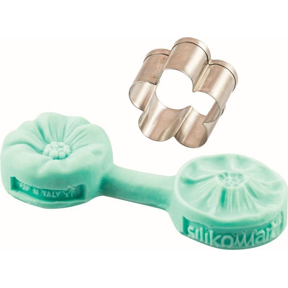 Settet inneholder en kakeutstikker i metall og et pregeverktøy i silikon. Størrelse ca. 3 cm i diameter.