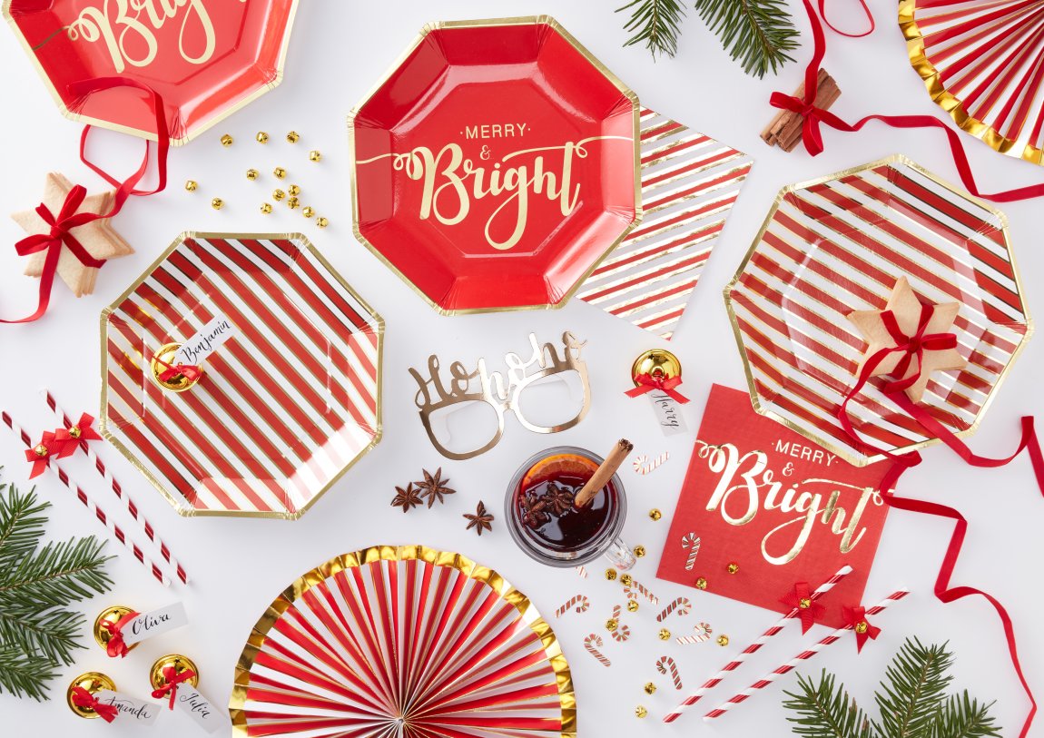 6-pakning med røde papptallerkener med gulltekst. Superfine tallerkener som setter stilen for alle julefeiringer!