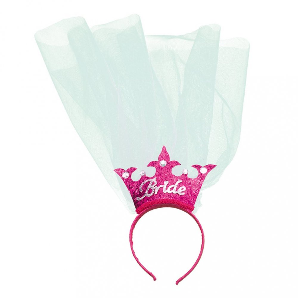 Krone med slør til den kommende bruden - så nydelig som tilbehør til bruden på utdrikningslaget!