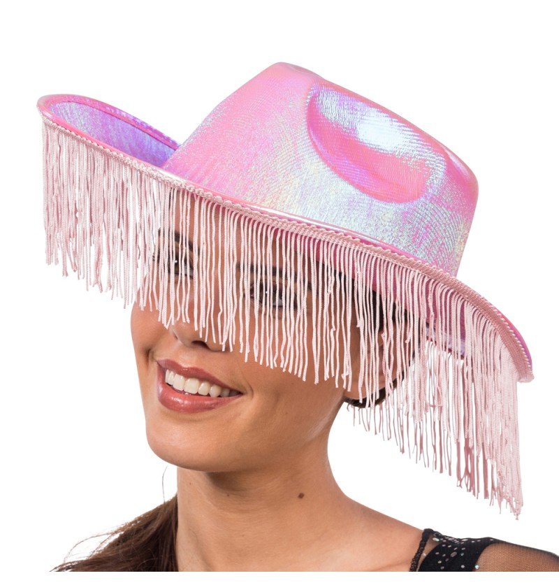 Rosa skimrende cowboyhatt med frynser