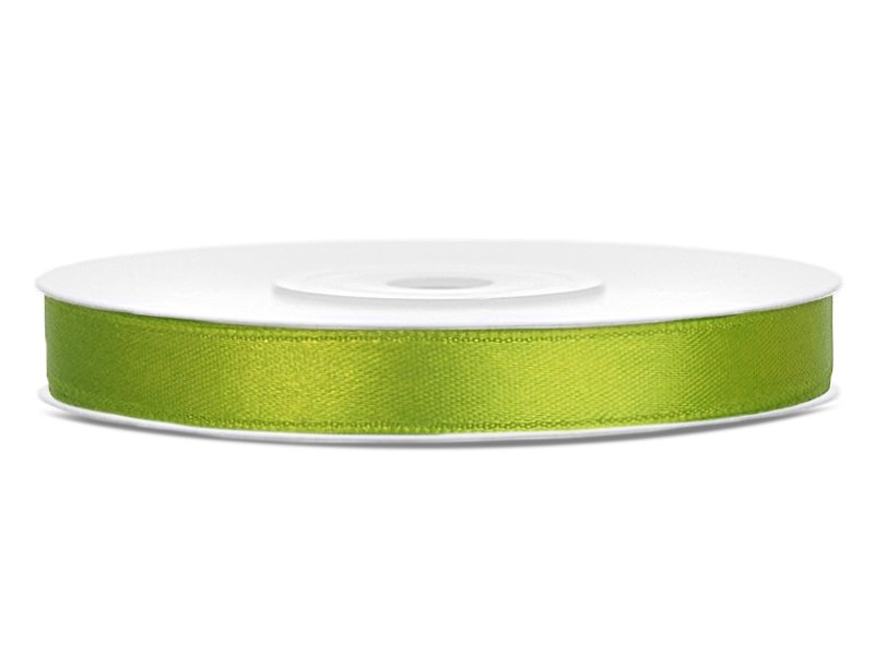 6 mm bredt satengbånd i eplegrønn. En rull består av 25 meter tape.
