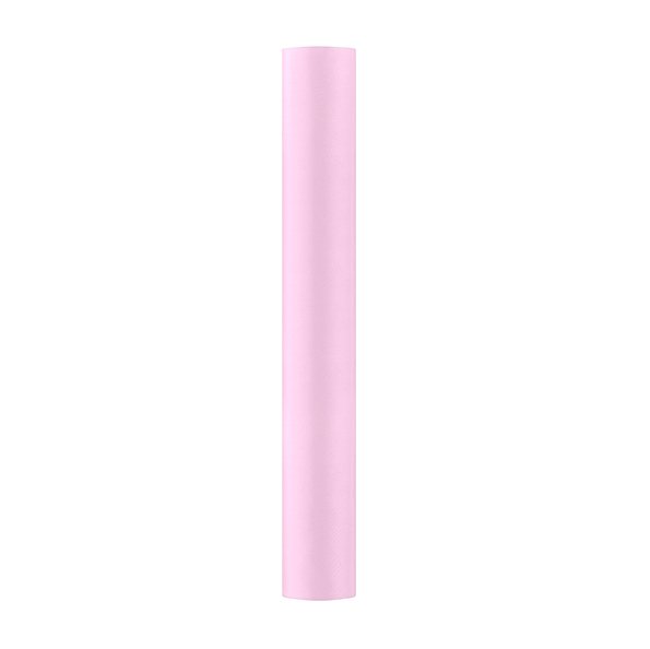 Løper med lyserosa satengstoff. Stoffet er 0,36 cm bredt og 9 meter langt. Satengstoffet er laserskåret og riper ikke, så det kan enkelt klippes til ønsket lengde.