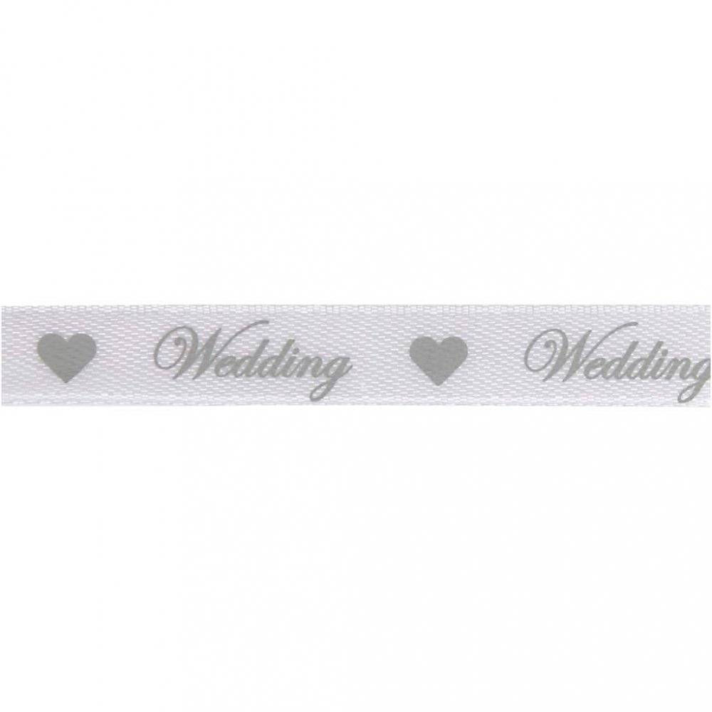 Satengbånd med trykk - Bryllup. Båndet er 1 cm bredt og 8 meter langt.