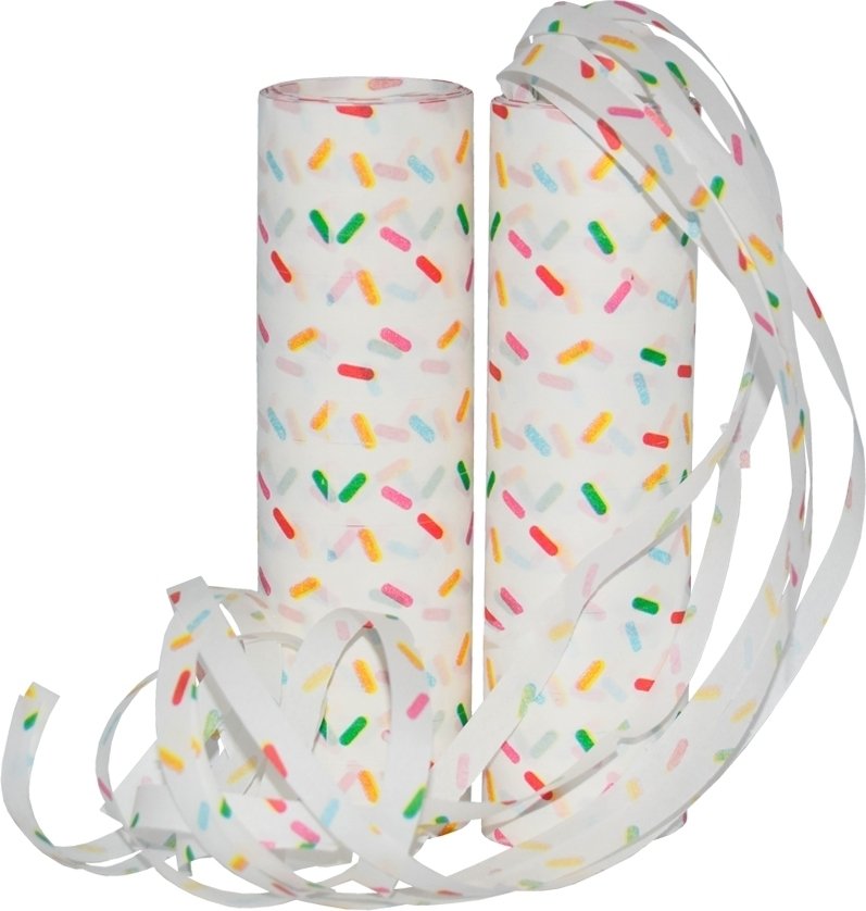 Hvite serpentiner med strøsselmønster i en 2-pakning, ca. 4 m.
