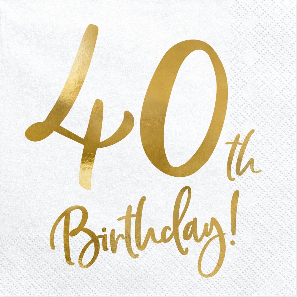 Servietter - 40-årsdag - Hvit/Gull - 20-pakning