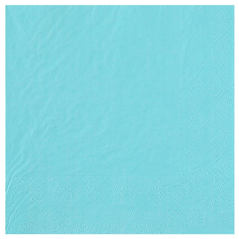 25-pakning med babyblå papirservietter. Serviettene er trelags og måler 33 x 33 cm.