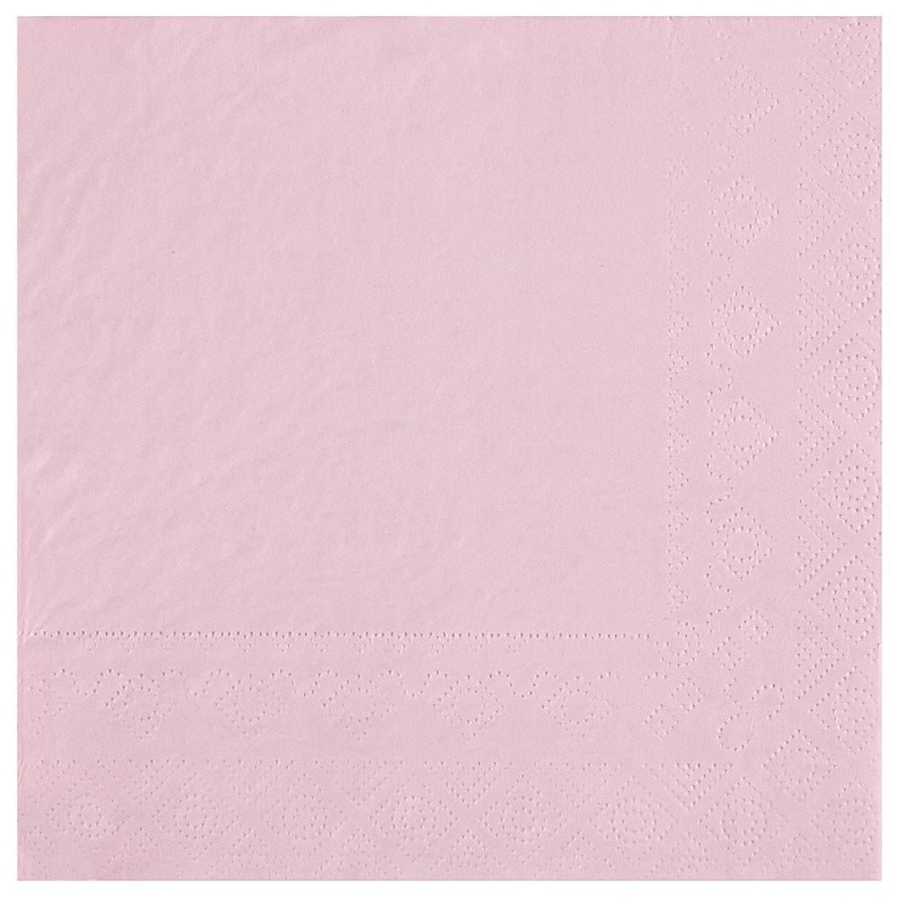 25-pakning med babyrosa servietter. Serviettene er 33 x 33 cm store.