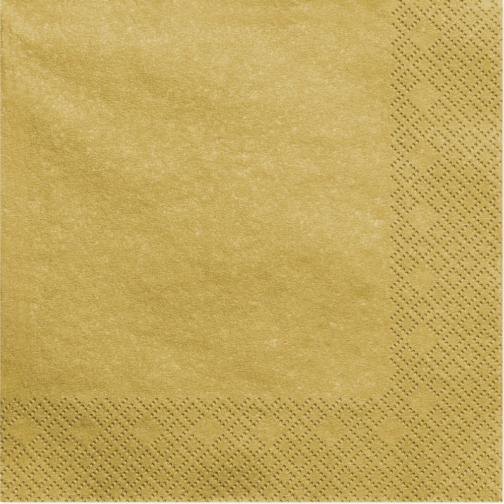 20-pakning med gullfargede papirservietter. Serviettene er trelags og måler 33 x 33 cm.