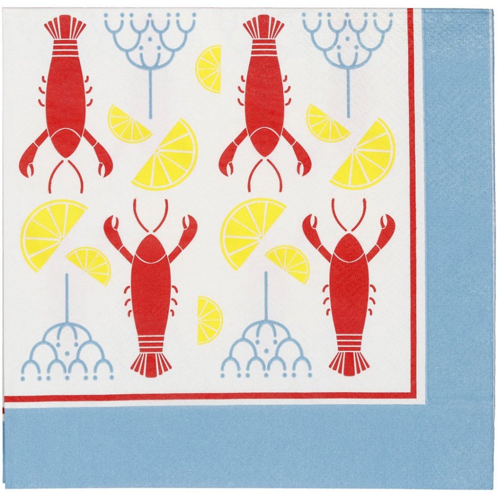Servietter - Kreps - Lyseblå/Rød - 20-pakning