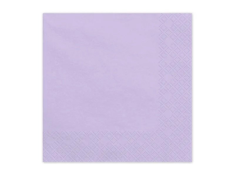 20-pakning med lyselilla papirservietter. Serviettene er trelags og måler 33 x 33 cm.