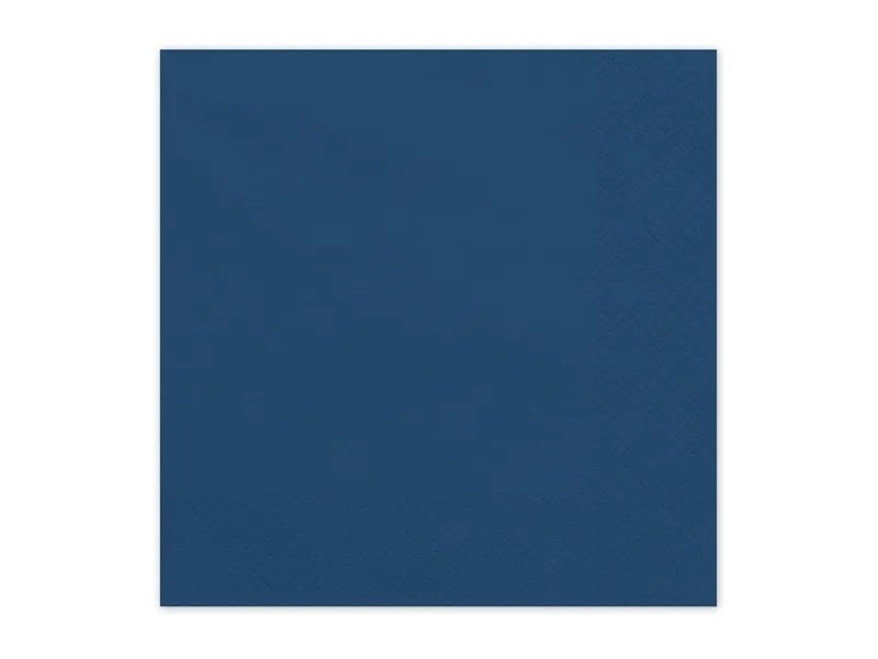 20-pakning med blå papirservietter. Serviettene er trelags og måler 33 x 33 cm.