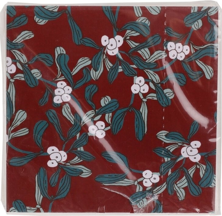 Pakke med 20 små servietter med et vakkert mistelteinmotiv.