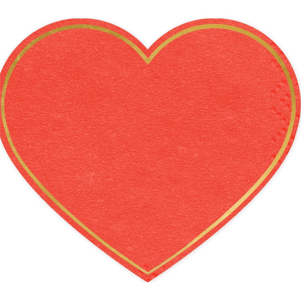 Servietter - Rødt hjerte med gullkant - 20-pakning