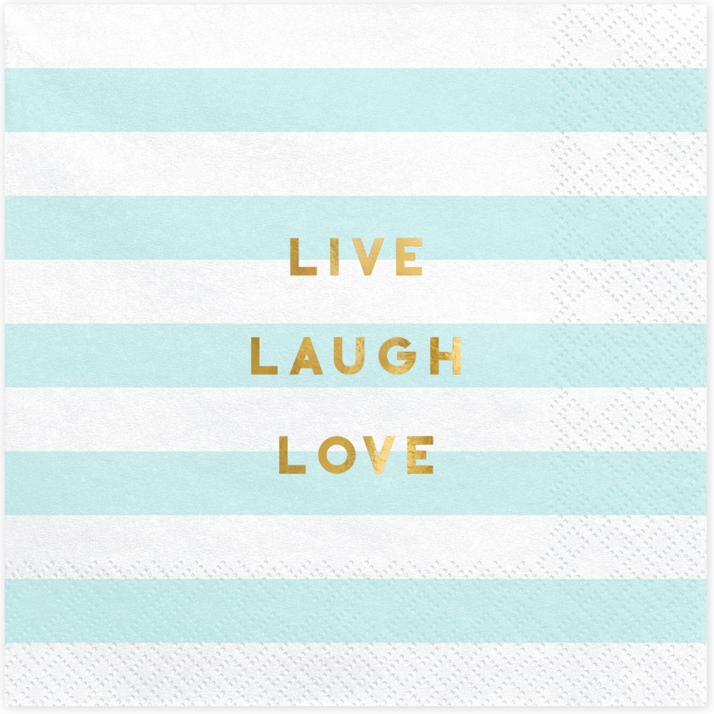 Servietter - Yummy - Live Laugh Love, lyseblå, 33x33cm (1 kartong / 12 stk) (1 stk / 20 stk)