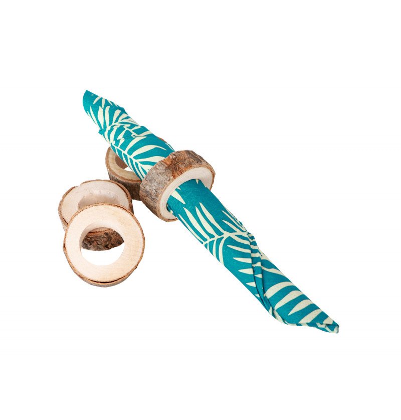8-pakning med serviettringer i tre - Så fine til den botaniske og rustikke borddekningen.