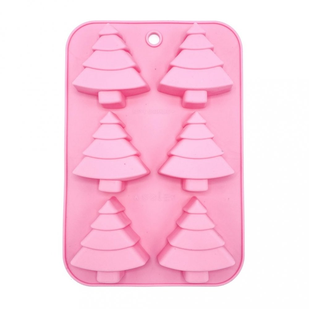 Med denne formen kan du lage seks perfekte grantrær. Perfekt til kakedekorasjoner, sjokolade, myke kjeks osv.