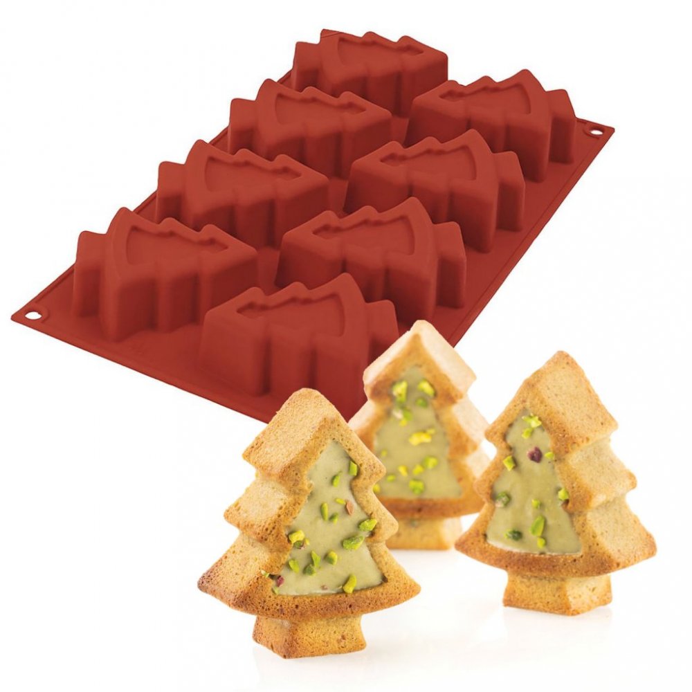 Glatt og fleksibel silikonform i form av små juletrær, perfekt til julebakst, myke kaker, sjokolade osv.