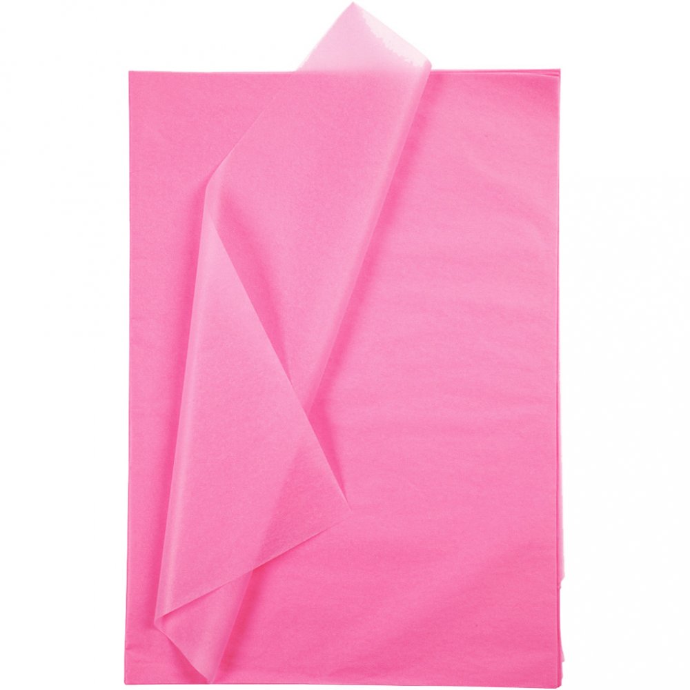 Pakke med 10 ark ensfarget, gjennomsiktig silkepapir i fargen knallrosa.