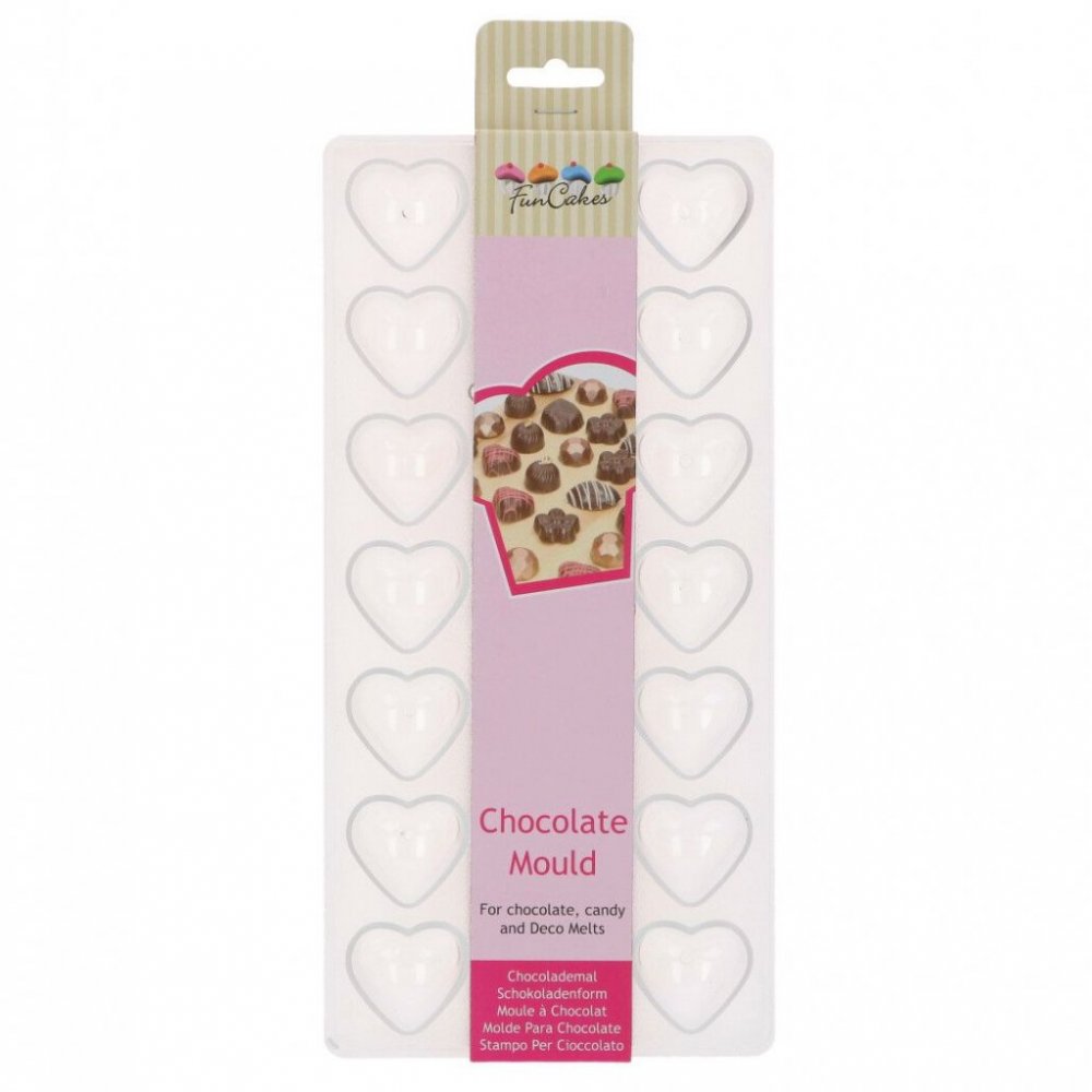 Lag supersøte sjokoladehjerter i denne fleksible formen fra FunCakes. Den gjennomsiktige sjokoladeformen er laget av polystyren, noe som gjør formen ekstra solid. Kan brukes til sjokolade eller Deco Melts.