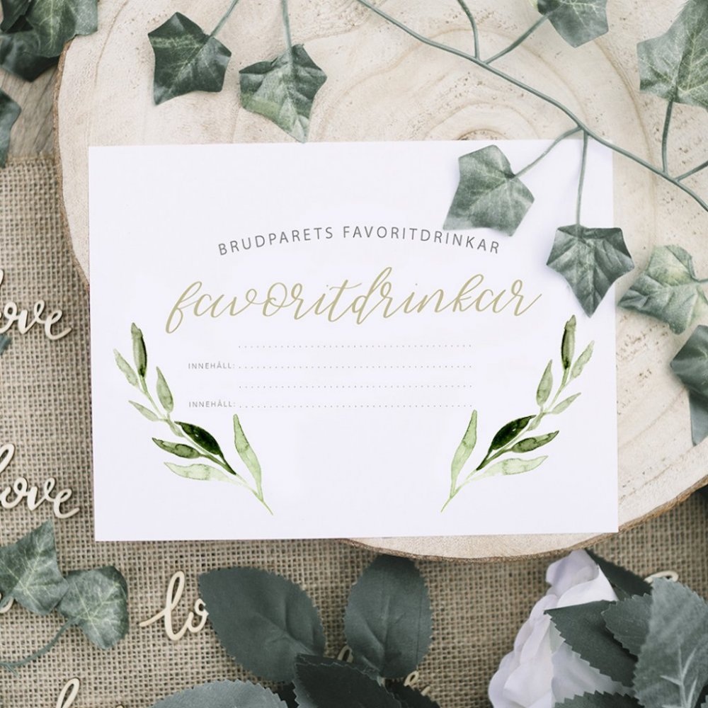 Skriv ut for å ramme inn eller henge opp i baren på bryllupsfesten. Her kan brudeparet presentere sine egne favorittdrinker.