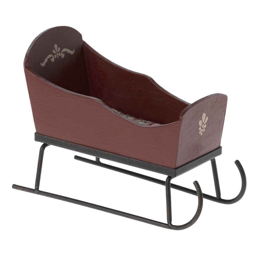 Nydelig slede fra Maileg med fine detaljer og medfølgende lite teppe. Jobber også for Nissedörren.