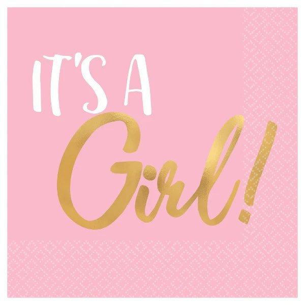 Små servietter - Det er en jente - Rosa/Gull - 16-pakning