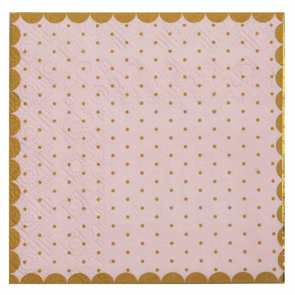 Superfine små servietter i lys rosa med detaljer i gullmetallic. 20-pakning.