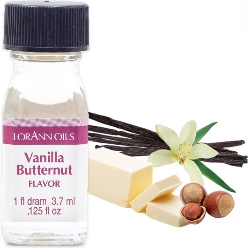 LorAnns Super Strength-smaker er superkonsentrerte smaker, omtrent 3-4 ganger mer konsentrerte enn andre smakstilsetninger basert på alkohol eller vann. Bevarer smaken selv ved høye temperaturer. Produktet er perfekt til å smaksette sukkerpasta eller marsipan, men også sjokolade, godteri, kjeks, brownies osv. Denne smaken har en deilig vaniljesmak (vanilje, smør og nøtter). Ingredienser: vann, propylenglykol, naturlige smakstilsetninger. Kan inneholde spor av egg, melk, peanøtter, svoveldioksid og sulfitter