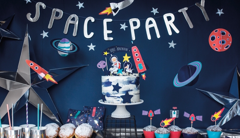7-pakning kaketopper med romtema. Så fine å pynte kaken eller cupcakesene dine med.
