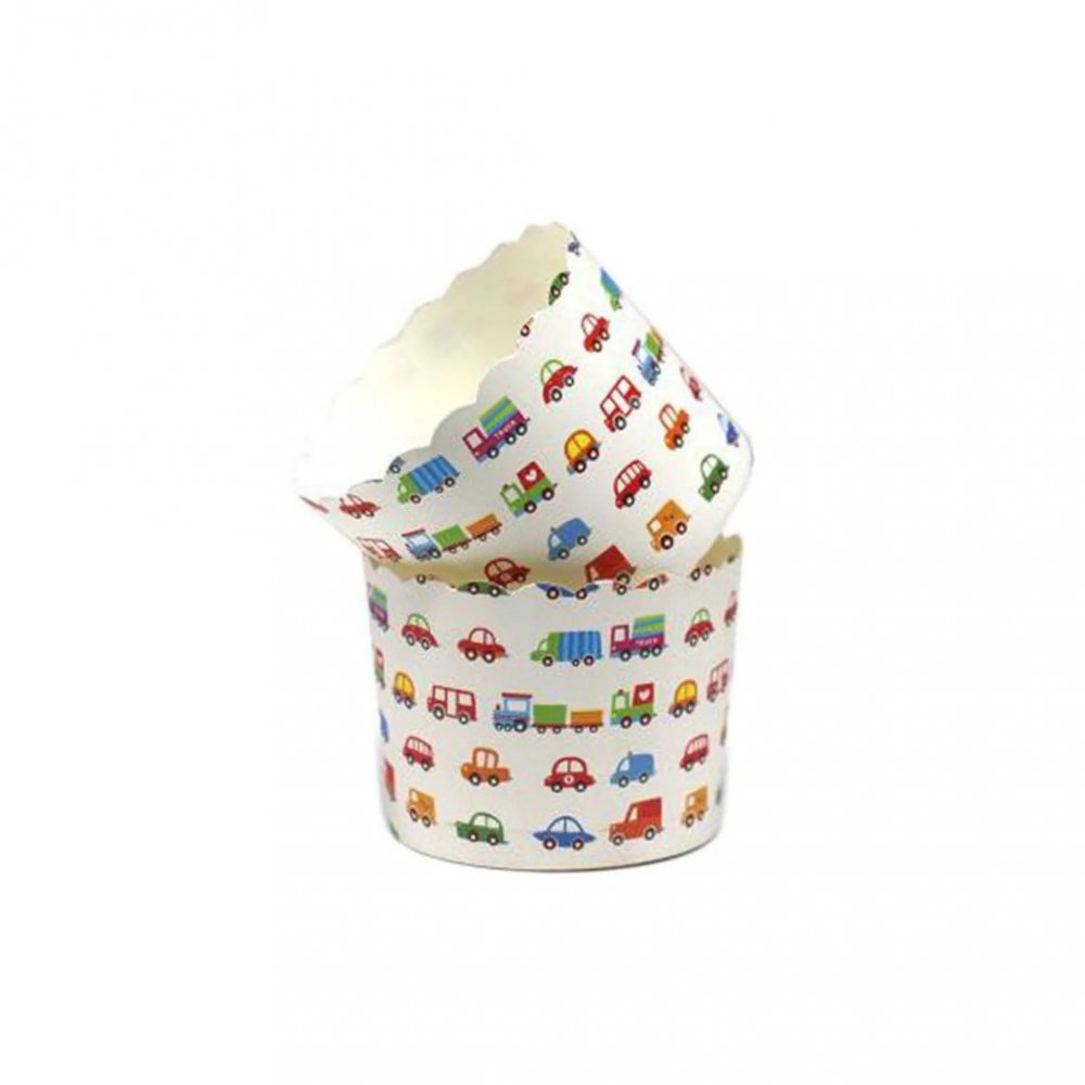 25-pakning med solide cupcake-former med biler - perfekt for en biltemafest! Kan også brukes som små snacksbegre til godteri eller popcorn!
