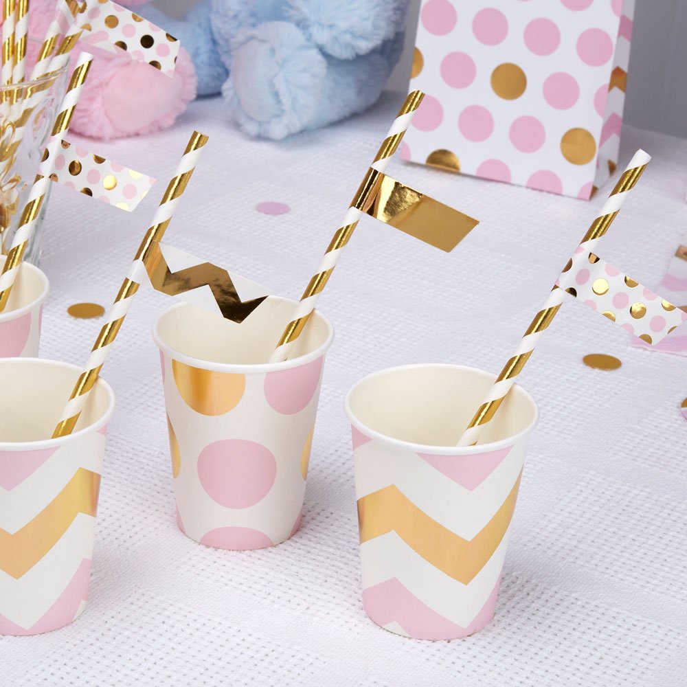 30-pakning med stråflagg fra serien «Pattern Works» i rosa og gull.