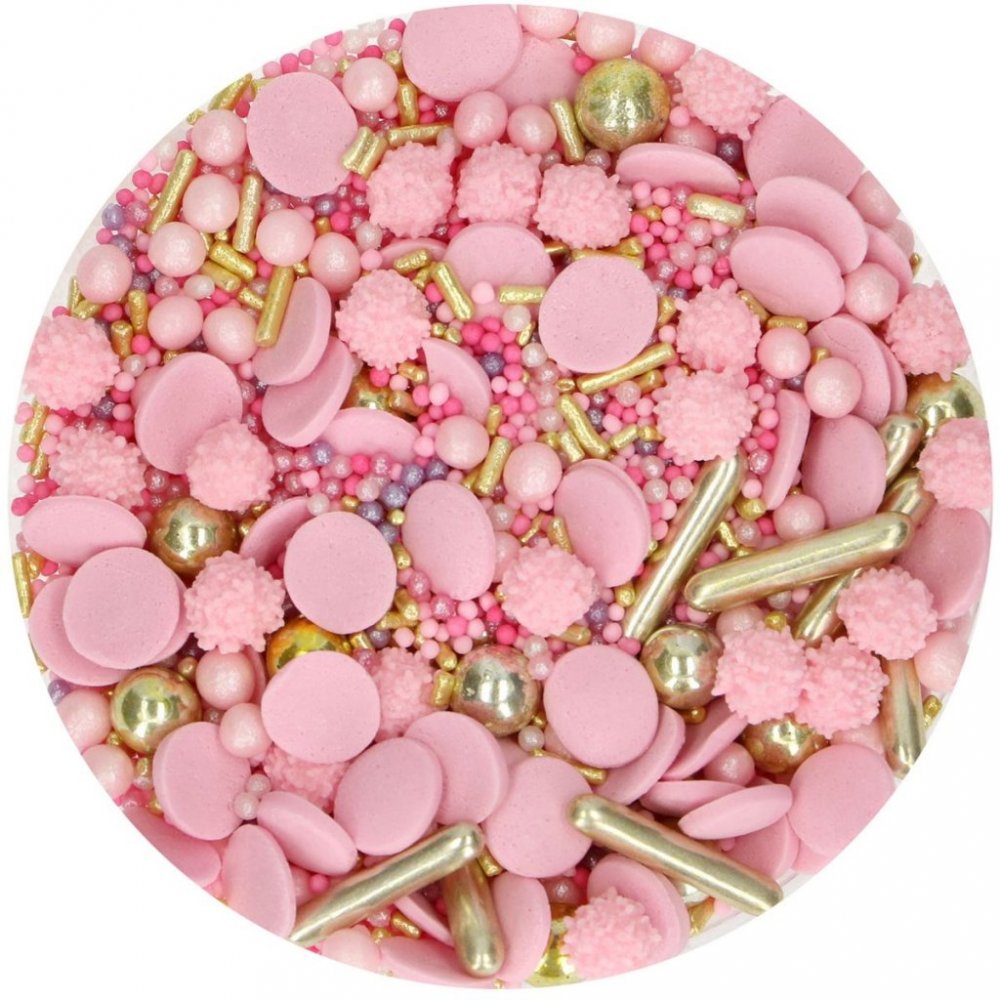 Fantastisk fin strøsselmiks i rosa og gyldne nyanser. Så fint til cupcakes, kaker og annet bakverk.