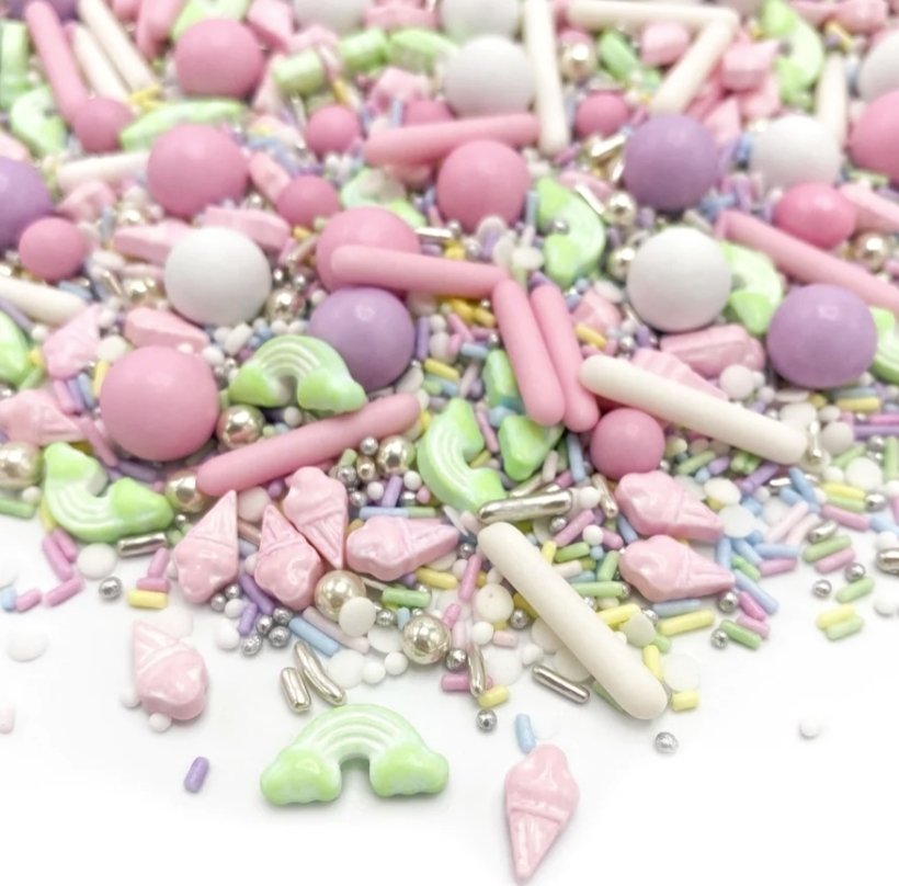Nydelig strøsselmiks i pastellfarger fra Happy Sprinkles - i en herlig sommerversjon! Perfekt ikke bare til å strø på iskrem, men også til kaker, cupcakes og andre bakverk.