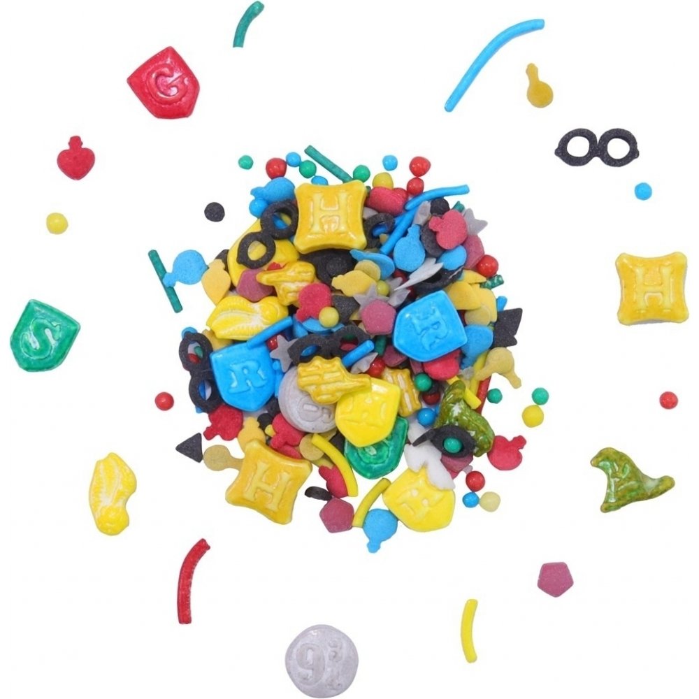 Fin strøsselblanding i Harry Potter-tema! Full av fine farger og MANGE referanser til Galtvort. Kan du finne dem alle? Perfekt å strø på iskrem, cupcakes, cake pops eller cupcakes!