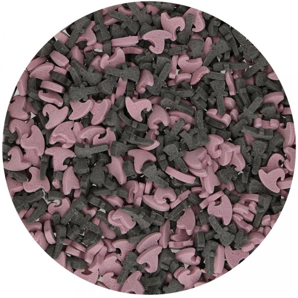 Strøblanding perfekt til Halloween-bakst! Strøblandingen består av heksehatter og koster i svart og lilla.