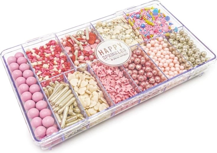 Superfin strøsselboks som gjør det enkelt og morsomt å dekorere bakevarer! Inneholder hele 350 gram, omtrent tilsvarende 4 "vanlige" glass fra Happy Sprinkles, men her får du strøsselet sortert. Inneholder sjokoladeperler, stjerner, forskjellige hjerter og mye mer!